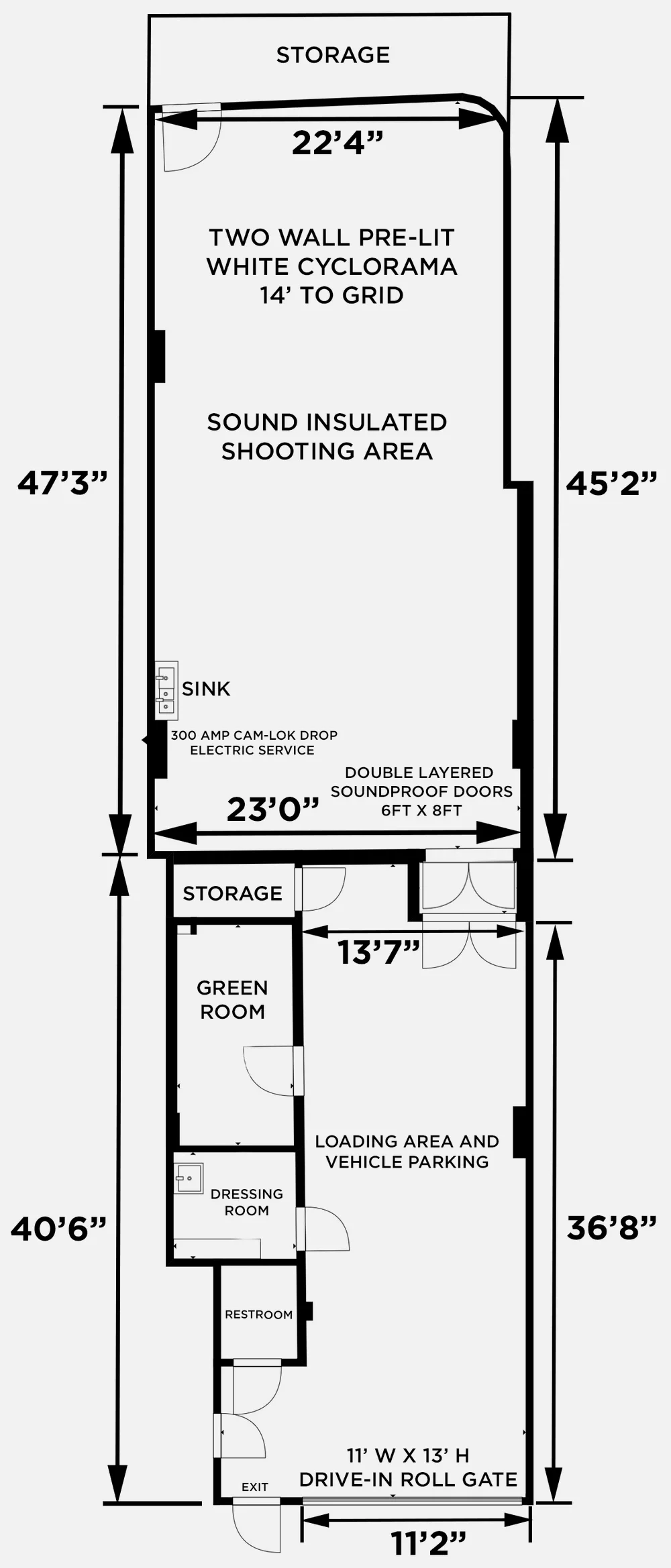 Studio 1 is adjacent to Studio 2 and can be rented independently or in tandem for multiple simultaneous setups. Both studios have separate entrances, roll gates, & loading areas and are sound isolated from each other.